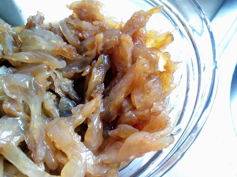 5、海蜇头买回后需用清水浸泡至少一晚,去除里面的咸味