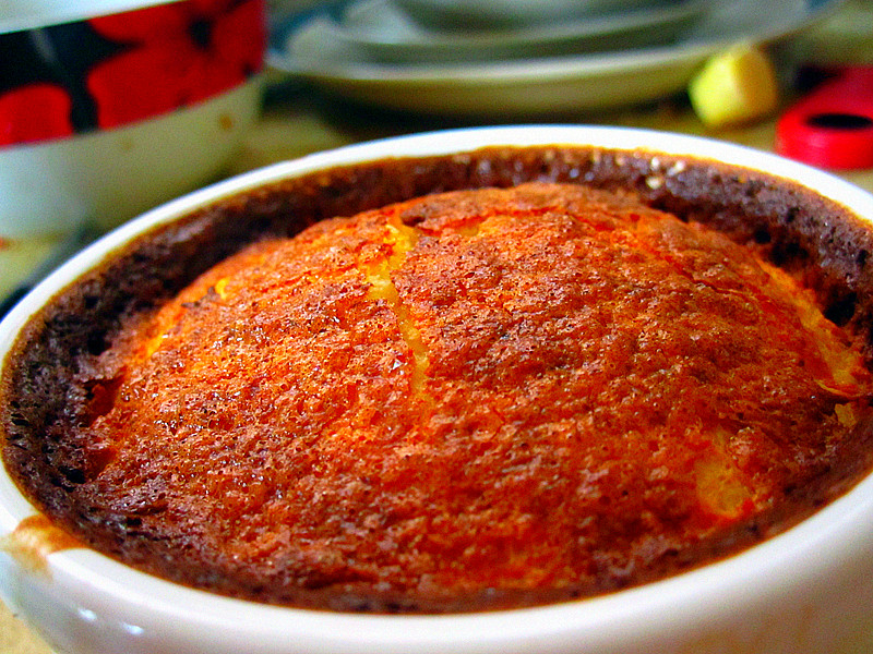 6、分装在两个100ml小烤杯里,160度左右水浴烘焙40分钟,或烤至表面金黄即可。