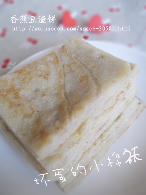 及以下步骤:香蕉去皮切片,用保鲜袋装好,捏成香蕉泥。有料理机的可以直接打碎。 香蕉泥加上豆渣、糖、面粉、牛奶,搅成糊。 香蕉去皮切片,用保鲜袋装好,捏成香蕉泥。有料理机的可以直接打碎。 香蕉泥加上豆渣、糖、面粉、牛奶,搅成糊。 香蕉去皮切片,用保鲜袋装好,捏成香蕉泥。有料理机的可以直接打碎。 香蕉泥加上豆渣、糖、面粉、牛奶,搅成糊。 香蕉去皮切片,用保鲜袋装好,捏成香蕉泥。有料理机的可以直接打碎。 香蕉泥加上豆渣、糖、面粉、牛奶,搅成糊。 平底锅加热后放适量油,倒入面糊,晃动锅,摊成薄饼,小火慢慢煎。 一面摊成金黄色后翻个面,摊熟即可。