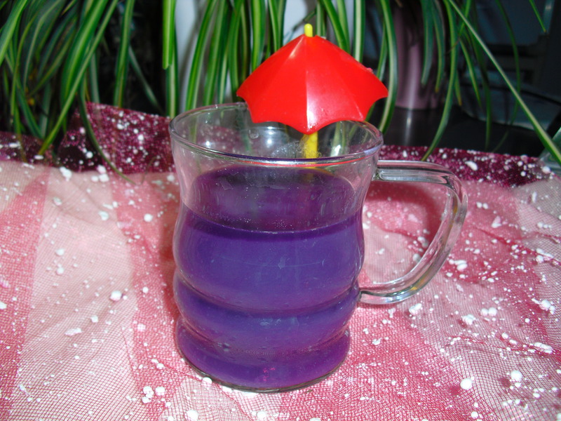 7、杯中倒入榨好的紫薯汁,加入西米,再来几块切小的熟紫薯粒即成!