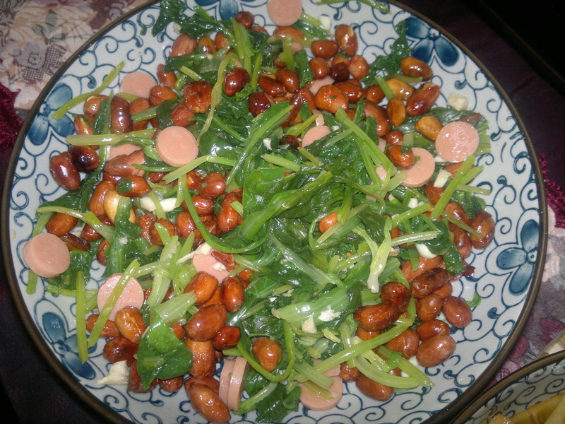 及以下步骤:菠菜洗净,用开水焯一下,沥干水分备用。 花生米小火炒熟,凉了再用,这样花生米会脆脆的。 菠菜洗净,用开水焯一下,沥干水分备用。 花生米小火炒熟,凉了再用,这样花生米会脆脆的。 菠菜洗净,用开水焯一下,沥干水分备用。 花生米小火炒熟,凉了再用,这样花生米会脆脆的。 我还加了一根火腿。 准备好了。 放入蒜末,盐,醋,鸡精,香油。 拌匀即可。