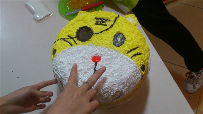 做了四个钟啊,第一次做蛋糕,做好之后都不舍得切了。不过还好是送人的啦。生日送自己做的蛋糕,很有成就,也很有创意