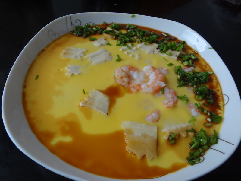 及以下步骤:锅内放水,蒸蛋,大约10分钟。自己看着办吧。 撒上葱花,调上少许生抽,新鲜出炉了! 又嫩又滑,营养全面。 豆腐切丁,葱切葱花,鸡蛋打散。虾仁用少许盐和料酒腌一下。 清水里加适量的盐,搅拌,倒入蛋液里。清水和蛋液大概是1:1。 虾仁放滚水中汆一下,豆腐也是。然后放入调好的蛋液里。 碗上放两根筷子,盖上保鲜膜。放两根筷子目的是防止保鲜膜沾上蛋液。 锅内放水,蒸蛋,大约10分钟。自己看着办吧。 撒上葱花,调上少许生抽,新鲜出炉了! 又嫩又滑,营养全面。