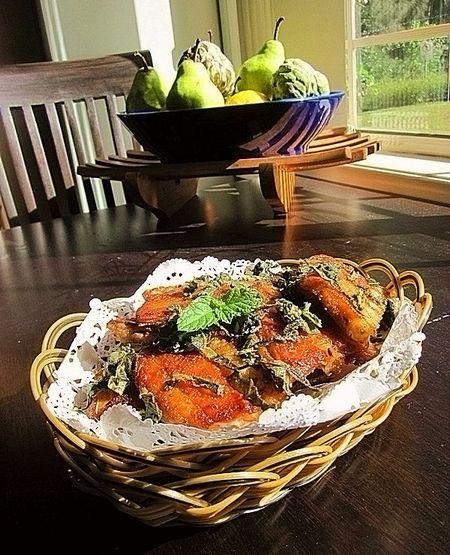 其实这香料到今天为止我依然不知道它的名字,两年前lg的表姐给了我一株香料藤萝,说是生命力很强而且味道很不错,她也叫不出名字来。我把它从布里斯本带回来悉尼插到院子泥土里,它真的顽强地生长起来了。