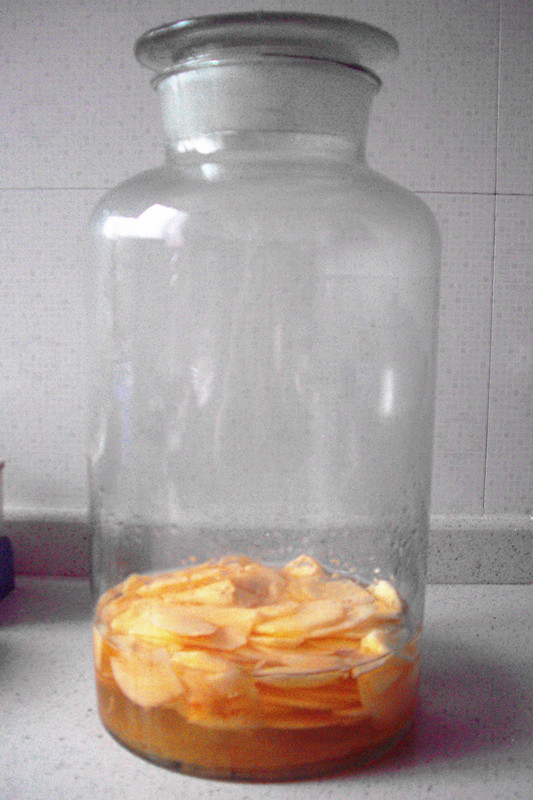 7、依次将苹果片、蜂蜜、白醋装入瓶子,密封好瓶盖。放置七天后就可以饮用了。