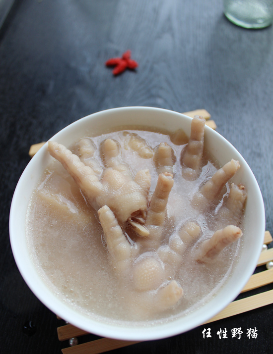 我的日记里 还没发过汤类的 其实自己到有经常煲汤, 懒人 经常是这样出现的。吃完了才想起没拍照。。 前几天在超市买了个榴莲 。不过这个时候的榴莲还是没有夏季的榴莲香 不过现在这个天气也不是很热。拿点榴莲壳来煲汤 也是很不错的选择。 虽然煲出来的汤没什么榴莲味 但是汤很温补的 配上含有大量胶原蛋白和钙质的鸡脚 很是适合女性朋友啊~~