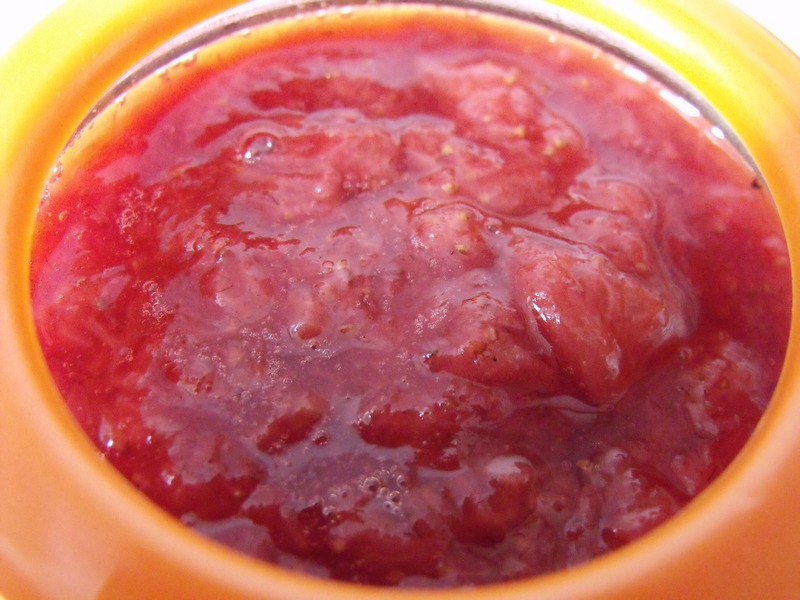 7、放上草莓酱,合紧,果酱弄的有点多了