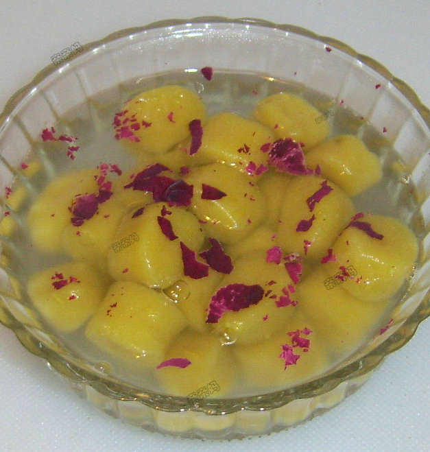 及以下步骤:锅内入冷水,煮开后下栗薯园子。 用勺背轻推不让粘一块儿。 浮起后,再稍微加一点冷水再煮一会儿,等再次浮起来,即可。 碗内盛上栗薯园子汤,面上撒上玫瑰花瓣。这园子又糯又q,不是很甜,有玫瑰花的香气~~ 美好的一天从这里开始 取一块面团,搓成长条,切成小剂子。 搓成栗薯园子备用。 锅内入冷水,煮开后下栗薯园子。 用勺背轻推不让粘一块儿。 浮起后,再稍微加一点冷水再煮一会儿,等再次浮起来,即可。 碗内盛上栗薯园子汤,面上撒上玫瑰花瓣。这园子又糯又q,不是很甜,有玫瑰花的香气~~ 美好的一天从这里开始