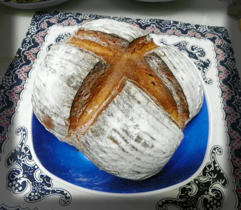 及以下步骤:右面拉长后再折叠,上面也一样这样折叠。折叠后盖上保鲜膜醒30分钟。折叠3次(每次间隔30分钟) 折叠好后入发酵栏里面,冰箱冷藏8-12小时。 第二天冰箱取出面团,已经发酵的2倍大,吼吼。胖胖滴。第二次发酵之前,需要回温一个小时。 回温后倒扣面团入烤盘中。 发酵好,烤箱预热290c°。烤箱开门喷水后关门3妙后继续喷水,喷水3次,温度下降245c°左右,烤箱最下层放个装好开水的烤盘,切记烤箱温度很高,不要烫到手,动作要快!放入面团,温度转到200c° 200c°20分钟左右 如上色太快,可加盖锡纸。 哈哈,真的很像滴。外皮脆,里面柔软。纯纯的麦香。即营养又美味。 发酵好,烤箱预热290c°。烤箱开门喷水后关门3妙后继续喷水,喷水3次,温度下降245c°左右,烤箱最下层放个装好开水的烤盘,切记烤箱温度很高,不要烫到手,动作要快!放入面团,温度转到200c° 200c°20分钟左右 如上色太快,可加盖锡纸。 哈哈,真的很像滴。外皮脆,里面柔软。纯纯的麦香。即营养又美味。