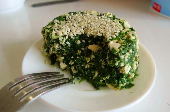 及以下步骤:加入适量盐、蒸鱼豉油、黑胡椒碎拌匀 用碗扣过来做成小菠菜豆腐塔,吃的时候,撒上芝麻和香油即可 原料图 菠菜洗净,焯水 剁碎成合适的大小 豆腐切块,锅中水烧开,加少许盐,焯水3分钟 将过水的豆腐沥干,碾碎 加入切碎的菠菜 加入适量盐、蒸鱼豉油、黑胡椒碎拌匀 用碗扣过来做成小菠菜豆腐塔,吃的时候,撒上芝麻和香油即可