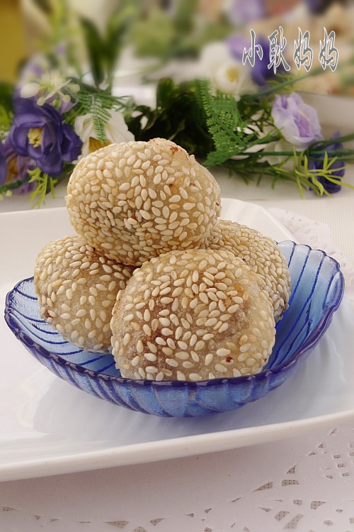 小时候吃的麻球是没有豆沙的,大大的一个里面包点白糖外面裹上一层芝麻,经过高温白糖也融化成了浓浓的糖浆,咬一口香甜软糯,很是回味。但是现在外面卖的麻球可能加了点其他东西,吃口较硬,油也不知道是哪来的,还是自己做吧,刚炸好的麻球香脆,放凉后的软糯,很有童年时的味道!在这样的季节里面,春暖花开做上几个麻球去郊外踏青很是惬意!
