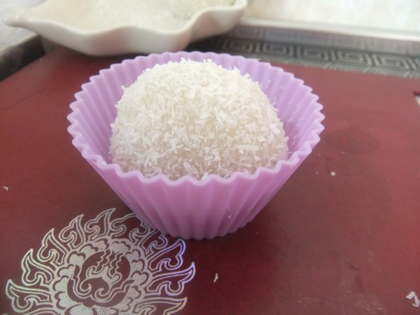及以下步骤:蒸好后称热裹上椰蓉即可 看了大家的做法其实也不难的,食材家里都有了 把澄粉用一点开水烫一下 看了大家的做法其实也不难的,食材家里都有了 把澄粉用一点开水烫一下 10g的糖加入糯米粉搅拌 然后把糯米粉、水一起加到澄粉里揉成面团 把面团平均分成等份,包入白砂糖搓圆 放入锅中蒸15分钟出炉 蒸好后称热裹上椰蓉即可