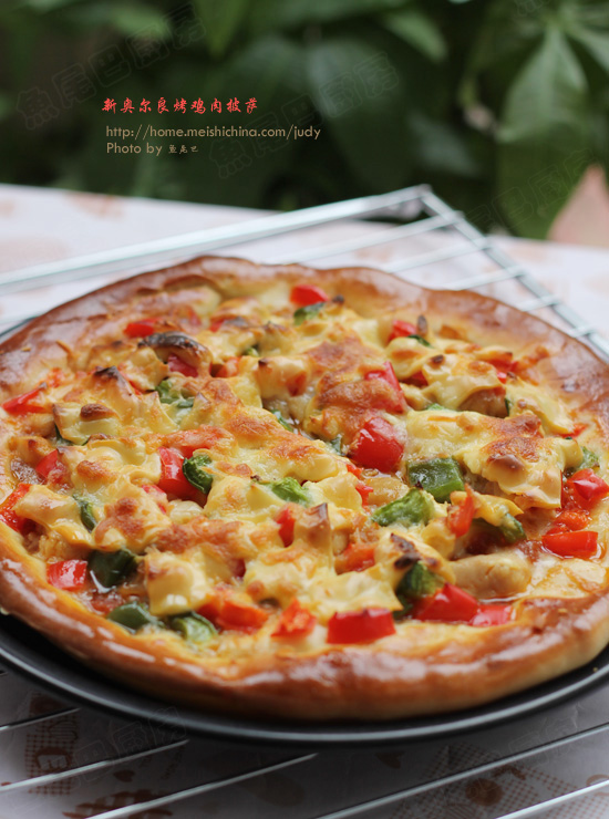 儿子最爱的鸡肉披萨。这次的鸡肉是用cook100新奥尔良烤肉料腌制后再烤制,所以做出来的披萨,不但具有奥尔良的甜香及辣香,气味还相当地鲜香诱人,让人回味十足。