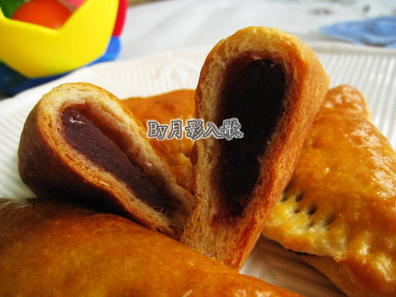 及以下步骤:用面皮包裹器黄油片,包紧,不要漏出来。 然后小心擀成薄约1厘米的长方形。 像叠被子一样叠起来,放入冰箱冷藏20分钟,然后这个步骤再重复两次。 将酥皮擀成薄约0.5厘米的长方形薄片,然后均匀分割成多个正方形,在每个正方形上挤上红豆沙。 然后折叠成三角形。 用叉子将边缘按紧。 发酵一些时间,然后烤箱预热,180°上下火,烤10分钟,然后拿出来刷上蛋黄液,再考十分钟即可 成品。 发酵一些时间,然后烤箱预热,180°上下火,烤10分钟,然后拿出来刷上蛋黄液,再考十分钟即可 成品。