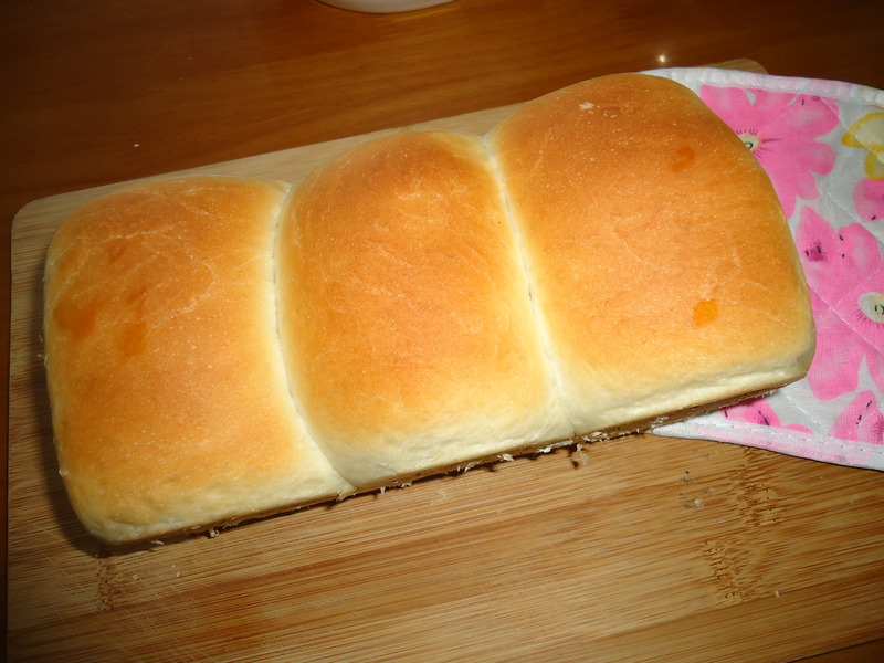 及以下步骤:将面团拿出整形后再放回面包机里发酵。这种天的室温已足够高了,所以只要放在面包机里直接发酵耐心等待就可以了,不用再开面包机的发酵功能。你也可以将面团放在容器里,将蒸锅加水烧到70度左右热,然后关火,将装有面团的容器放进蒸锅里闷着。这样发的就快一些。 面团基础发酵2-2.5倍大。用手指蘸面粉按一下面团中间,洞口不回缩,周围不塌陷,发酵结束。 面团取出,轻压排气。分割成三等分,滚圆。盖上保鲜膜松驰15分钟。 将松驰好的面团,擀成椭圆形。 再卷起,封好口。面团卷的宽度要和吐司模的宽度一至。卷时最好卷2-2.5圈,不要超过3圈。 吐司模内层刷油,将卷好的面团放入,排好。 将吐司模放进烤箱进行第二次发酵。这时不用开启烤箱,只要在吐司模下放盘热水即可。 将面团发至8分满,就可以开始烤了。 烤箱160度预热10分钟。放入吐司模再烤25分钟即可。 烤箱160度预热10分钟。放入吐司模再烤25分钟即可。