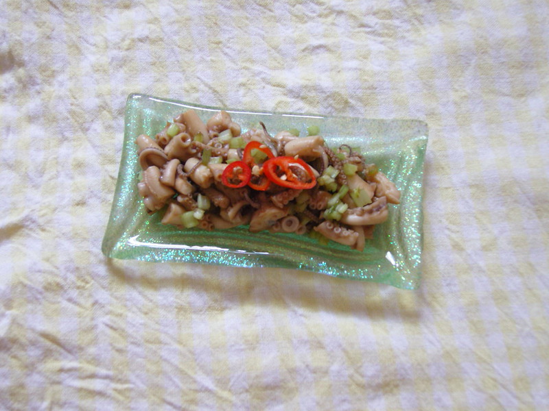 其实日本的芥末八爪鱼是用生鱼做的,俺们国内达不到人家厚生省的食品卫生标准,只有吃熟的啦