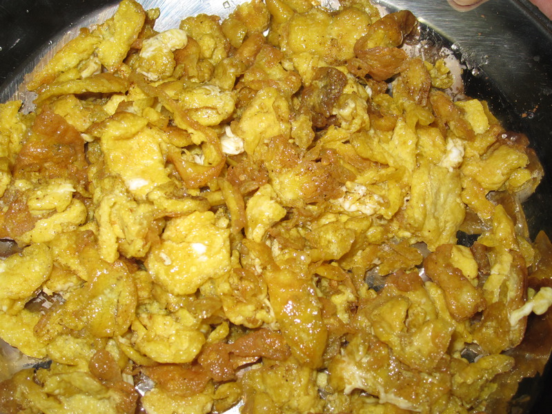 及以下步骤:瞧,多漂亮啊!可以加些番茄沙司蘸着吃,味道很不错哦! 打三个鸡蛋,2个洋鸡蛋,1个土鸡蛋。洋鸡蛋相对便宜,所以多用点,土鸡蛋可以增加色泽和香味,可依个人口味改变用料。 加入适量精盐和料酒,将鸡蛋打匀。 打三个鸡蛋,2个洋鸡蛋,1个土鸡蛋。洋鸡蛋相对便宜,所以多用点,土鸡蛋可以增加色泽和香味,可依个人口味改变用料。 加入适量精盐和料酒,将鸡蛋打匀。 把炒锅加热,倒入玉米油,待油烧热至微冒烟时准备倒蛋液,事先准备好一个网状的漏勺,把蛋液倒在漏勺里,使之缓慢漏进热油里。 蛋液全部倒完后,用锅铲捣鼓鸡蛋,越松散越好。 待鸡蛋呈金色且起壳时可将其捞出,盛在刚才使用过的漏勺中,用锅铲尽量把油敝掉。 成品出锅,撒上些糖,椒盐,五香粉,拌匀。 瞧,多漂亮啊!可以加些番茄沙司蘸着吃,味道很不错哦!