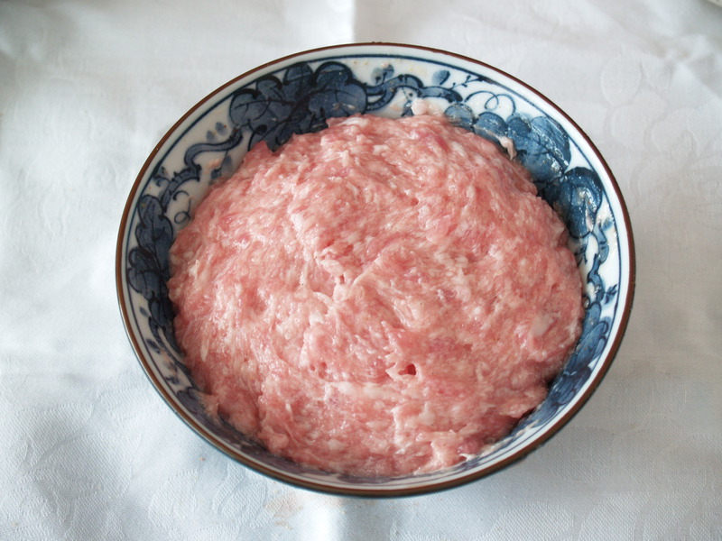 1、选择新鲜猪肉或冷冻猪肉,脂肪含量约20-30%,建议在冷冻状态下(-4℃)将原料肉绞碎(绞肉机孔板直径4mm)、备用。没有绞肉机的家庭也可直接选购市售猪肉馅。