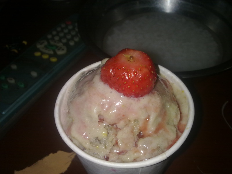 我第一次挑战冰淇淋,没想到成功了!香蕉+草莓,味道倍儿棒! (注:以后,我将会发布更多版本的双味冰淇淋)