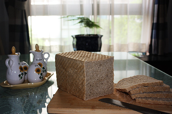 因家中有高血糖患者,加入白砂糖的面包都没口福享用。所以才想到用木糖醇代替白砂糖试着做全麦吐司,做之前心中没底,不知道能否达到预想的效果,打开模具盒的那一刻,很是兴奋,因为——成功了!