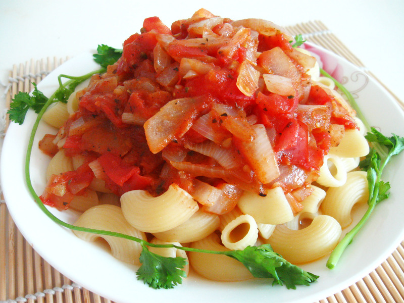 及以下步骤:把做好的比萨酱浇在弯头面上面 用香菜稍作装饰就可以了 西红柿切丁、葱头切丁、大蒜拍碎切末 炒锅放入植物油烧热,放入葱头和大蒜炒香 葱头和大蒜炒出香味以后加入西红柿丁 当西红柿丁炒出汤水后加入白糖、黑胡椒粉、比萨草、罗勒叶、盐,再翻炒两分钟就可以了 汤锅坐水煮弯头面 煮熟后的弯头面过冷水冲一下 把做好的比萨酱浇在弯头面上面 用香菜稍作装饰就可以了