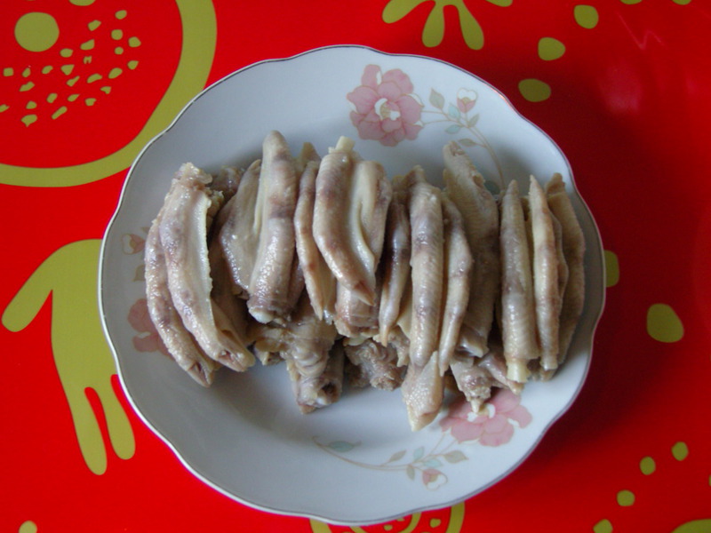 2、洗净的鸭掌切段