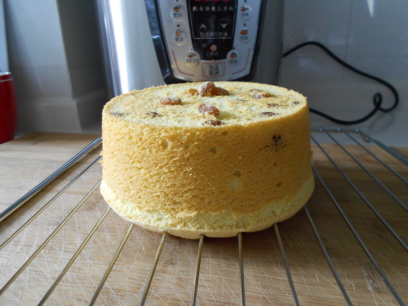 基础戚风蛋糕,别人都用蔓越莓,我没买到,只好上葡萄干了,虽然不怎么看好,味道还可以