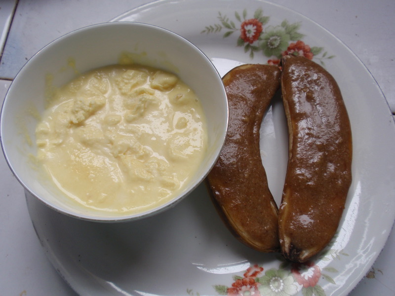 6、烤好的香蕉配着冰激凌上桌即可。(冰激凌是我自己做的)