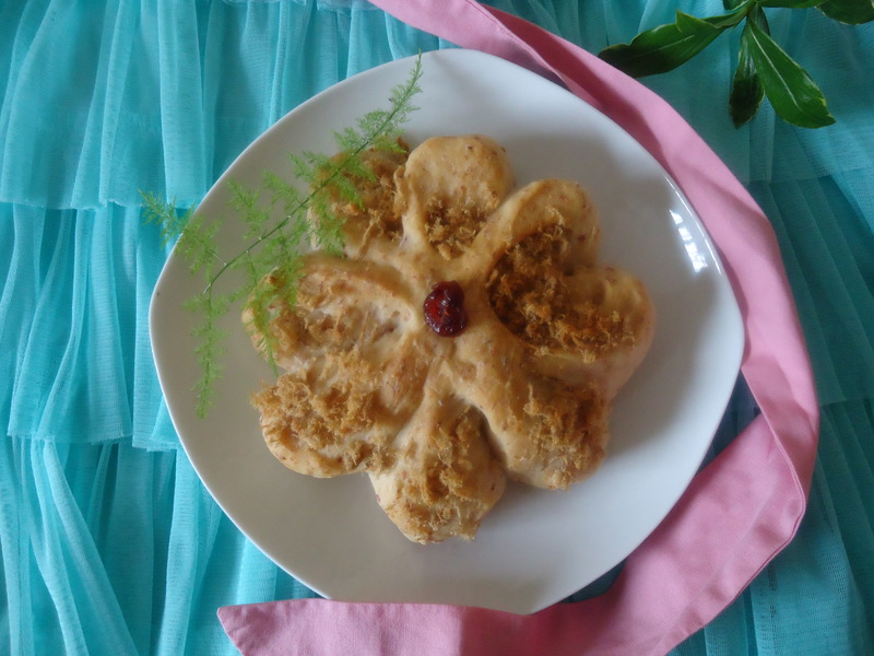 美味培根肉松花型面包制作步骤: