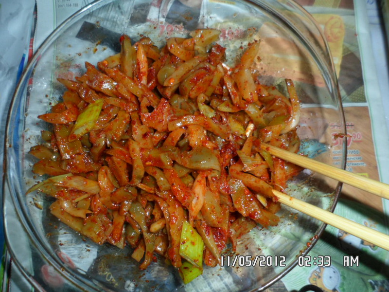文文妈从莫斯科买了四川的疙瘩头咸菜,出去溜达的空,文文都切块仍到保鲜盒里,准备吃,结果齁到了,哈哈,于是乎,我按着记忆中的味道,凉拌了这个疙瘩头,时间挺快,所以咸味还是挺大的。如果想吃淡口味的可以泡几个小时。味道更佳,在国外食材有限,所以没有香油。少量滴几滴更佳