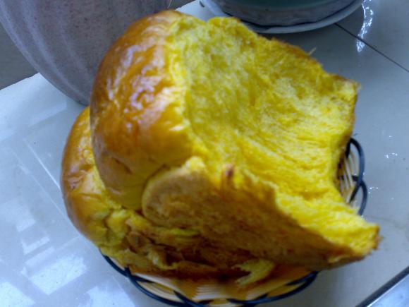 7、金黄色的南瓜吐司,这个图照的不好,不过还是看的出是金黄色的