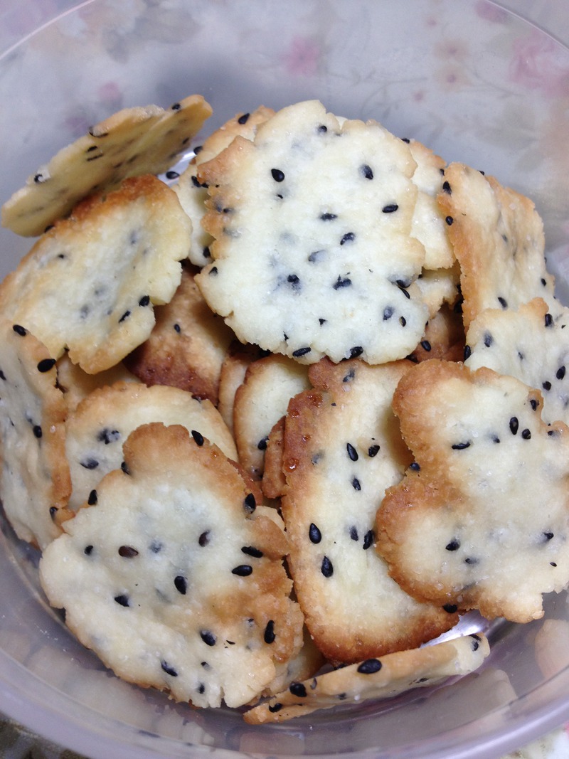 及以下步骤:将切片的面片用手整成小球,放在烤盘上,再用手按成薄片 全部按好的薄饼,烤箱预热,中层,上下火,150度,8分钟 烤至饼干四周颜色稍深就行了 加入黑芝麻,这个喜欢的可以多放点,不喜欢的少放点,没有一定要求 将混合的面粉整成圆形,不用使颈揉,用手捏圆就行 再将圆形的面团搓成长条 用刀切小片 将切片的面片用手整成小球,放在烤盘上,再用手按成薄片 全部按好的薄饼,烤箱预热,中层,上下火,150度,8分钟 烤至饼干四周颜色稍深就行了