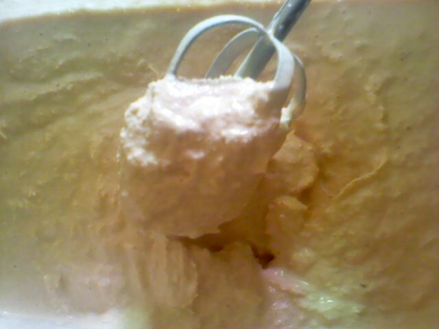 及以下步骤:加热牛奶蛋黄液至浓稠,能挂糊在勺子的背上即可离火 分出两份牛奶蛋黄糊,一份乘热加入可可粉搅拌均匀,放凉备用 一份原味牛奶蛋黄糊放凉备用 添一张淡奶油的图片 淡奶油加入一大勺白砂糖打至六分发左右,即成羽状但仍可流动 分一小份淡奶油入晾凉的原味牛奶蛋黄糊中搅拌均匀(因为我的原味牛奶蛋黄糊比较小分所以分了小半) 把放凉的可可蛋黄糊放入剩余的淡奶油中搅拌均匀 搅拌均匀的可可蛋奶冰激凌 分别放入冰箱冷冻,过一小时拿出搅拌,之后每隔一小时拿出搅拌,三四次即可(图为第一次搅拌时) 这是原味的,吃的时候弄成这样了,忽略它吧,不过虽然卖相不好味道可是不差,而且搅拌原味蛋奶冰激凌时我忘了盖盖弄翻了不少,可怜吧