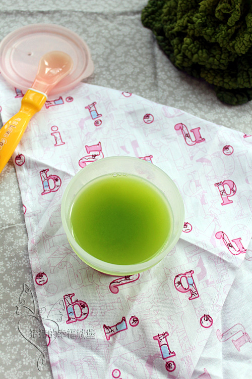 7、过滤好的菜汁放到温度合适就可以给宝宝喝了。