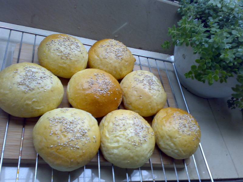 及以下步骤:排气分成8份,包入牛肉,整形 放入烤盘再次发酵1.5倍大 涂上蛋液 洒上白芝麻 烤箱180度,烤20分钟左右 10分钟的时候盖上锡纸防止面包上色过度 出炉面包 烤得多松软啊 刚下过雨,面包就端出来了,新鲜啊,跟雨后的空气一样 刚下过雨,面包就端出来了,新鲜啊,跟雨后的空气一样
