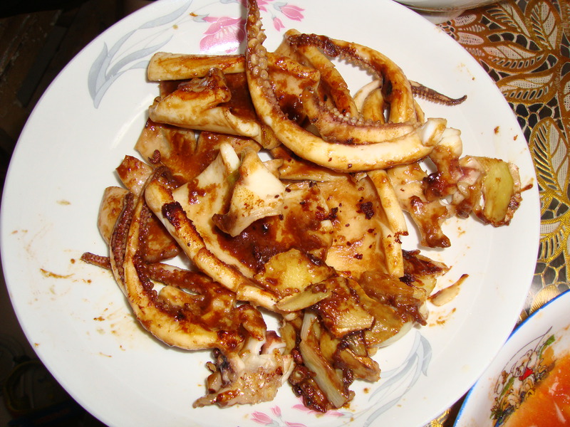 儿子最爱吃的鱿鱼,每次都吃得光光的,我的脸上也我光光的,呵呵