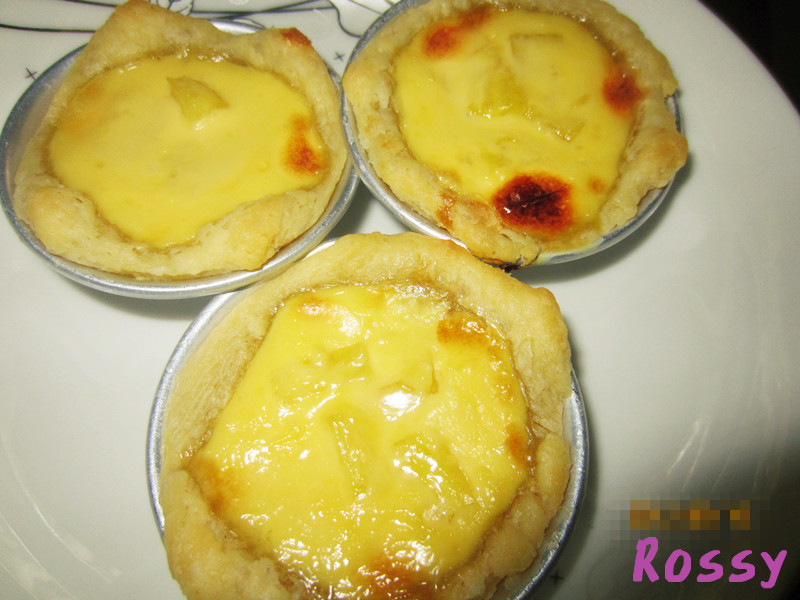 菠萝盛行的季节怎能不好好利用呢~~带一点点酸,菠萝的果香改善了让你太感觉到蛋挞吃多了就会腻的感觉~还不错哦,只是我是新手啊,第一次做蛋挞,积累了经验,菜谱也会顺便改善一下~