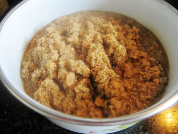 3、捞出鱼子,此时鱼子大部分会是块状