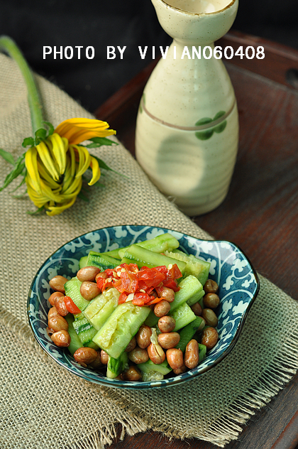 及以下步骤:然后切成均匀的小段。 加入陈醋,生抽,白糖,盐搅拌均匀,腌十五分钟。 加入凉晾的花生米。 装盘,加入适量的香油和剁椒即可。 从中间剖开 用刀侧面拍扁。 然后切成均匀的小段。 加入陈醋,生抽,白糖,盐搅拌均匀,腌十五分钟。 加入凉晾的花生米。 装盘,加入适量的香油和剁椒即可。
