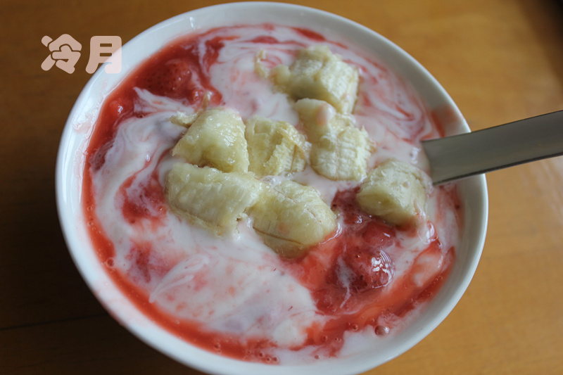 及以下步骤:自制酸奶。把酸奶器具用热水消毒,加入1l纯牛奶和一小包菌种,8-10小时制成。 自制草莓酱。把新鲜的草莓洗净、去蒂切块,加入白糖腌一夜,放入陶瓷锅内小火煮,大约50分钟左右。 自制酸奶。把酸奶器具用热水消毒,加入1l纯牛奶和一小包菌种,8-10小时制成。 自制草莓酱。把新鲜的草莓洗净、去蒂切块,加入白糖腌一夜,放入陶瓷锅内小火煮,大约50分钟左右。 自制酸奶。把酸奶器具用热水消毒,加入1l纯牛奶和一小包菌种,8-10小时制成。 自制草莓酱。把新鲜的草莓洗净、去蒂切块,加入白糖腌一夜,放入陶瓷锅内小火煮,大约50分钟左右。 自制酸奶。把酸奶器具用热水消毒,加入1l纯牛奶和一小包菌种,8-10小时制成。 自制草莓酱。把新鲜的草莓洗净、去蒂切块,加入白糖腌一夜,放入陶瓷锅内小火煮,大约50分钟左右。 把草莓酱加入酸奶,再加入切成丁的香蕉。 搅拌均匀,开吃啦!名符其实的大果粒酸奶,酸酸甜甜的口感,加上香蕉的绵软,真是超级美味啊!