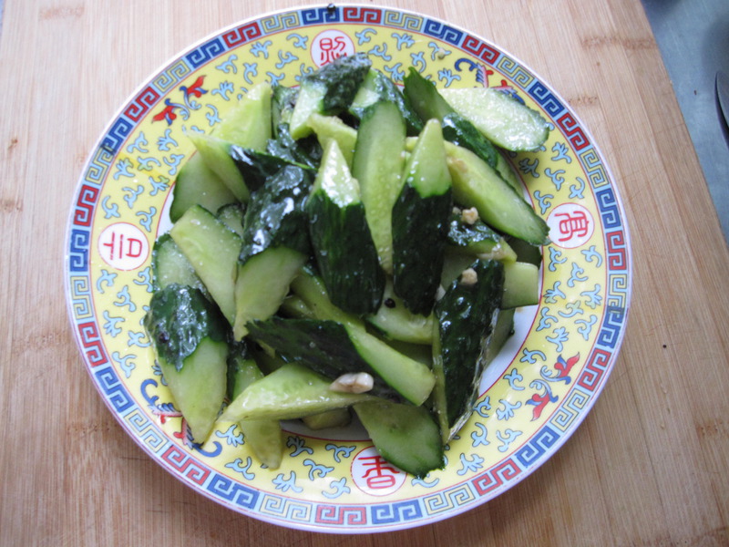 及以下步骤:把大蒜切末放到黄瓜里。 把黄瓜洗净,切滚刀块放到稍大一点的容器里。 把大蒜切末放到黄瓜里。 把黄瓜洗净,切滚刀块放到稍大一点的容器里。 把大蒜切末放到黄瓜里。 把黄瓜洗净,切滚刀块放到稍大一点的容器里。 把大蒜切末放到黄瓜里。 锅里倒油把花椒,辣椒放进锅里炸出香味。 把炸好的料油浇到大蒜上,搅拌匀后加入盐,白糖,味精,醋进行调制。 做好了,大家快来尝尝吧。