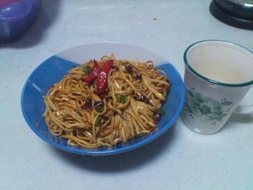 因为老公和女儿爱吃凉面,学着当地朋友,自己也自制了一把。 女儿和老公都说ok!,可吃起来,还没有第一次做得好!发几张照片和大家分享一下,