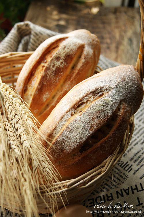 及以下步骤:由上至下将两边稍微往里收,卷成两头尖的橄榄形。 整形好的面团放入烤盘,置温度28度左右,湿度80%处发酵30分钟,至体积约1.2倍大。 发酵好表面洒上低筋面粉。 用利刀在面团表面划出几道口子。 烤箱预热220度,喷蒸汽烘烤25分钟至表明呈现漂亮的烘焙色即可。 由上至下将两边稍微往里收,卷成两头尖的橄榄形。 整形好的面团放入烤盘,置温度28度左右,湿度80%处发酵30分钟,至体积约1.2倍大。 发酵好表面洒上低筋面粉。 用利刀在面团表面划出几道口子。 烤箱预热220度,喷蒸汽烘烤25分钟至表明呈现漂亮的烘焙色即可。