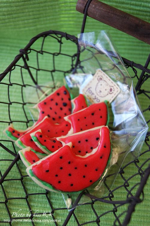 及以下步骤:烤箱预热170°,中层、烘焙15分钟,烤至饼干边缘着色,取出室温晾凉待用。 用软胶刮板将蛋白、糖粉充分搅拌均匀,无颗粒状。 用电动打蛋器中高速打至软尖峰即可。(滴入适量柠檬汁调节稠度) 牙签取少许红、绿色素调入蛋白膏中搅匀。 绿色蛋白膏细裱勾出瓜皮,稍晾一下。 红色蛋白膏填充瓜瓤部分,再用牙签蘸少许黑色膏点在瓜瓤中,晾干。 用电动打蛋器中高速打至软尖峰即可。(滴入适量柠檬汁调节稠度) 牙签取少许红、绿色素调入蛋白膏中搅匀。 绿色蛋白膏细裱勾出瓜皮,稍晾一下。 红色蛋白膏填充瓜瓤部分,再用牙签蘸少许黑色膏点在瓜瓤中,晾干。