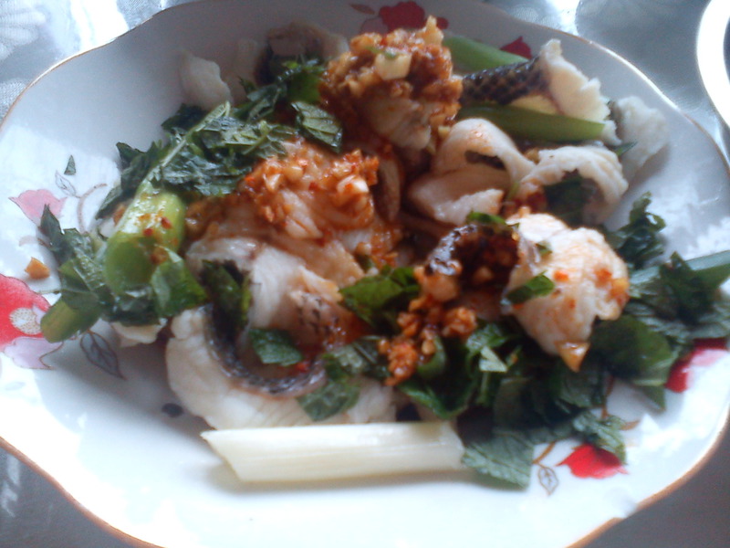 7、待鱼片稍凉,均匀倒入调制好的凉拌酱,最后撒上大鱼香叶~~哇哦,爽口清凉的乌鱼片就搞定咯!