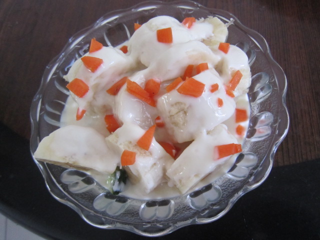 5、整袋都倒入后放上胡萝卜小粒