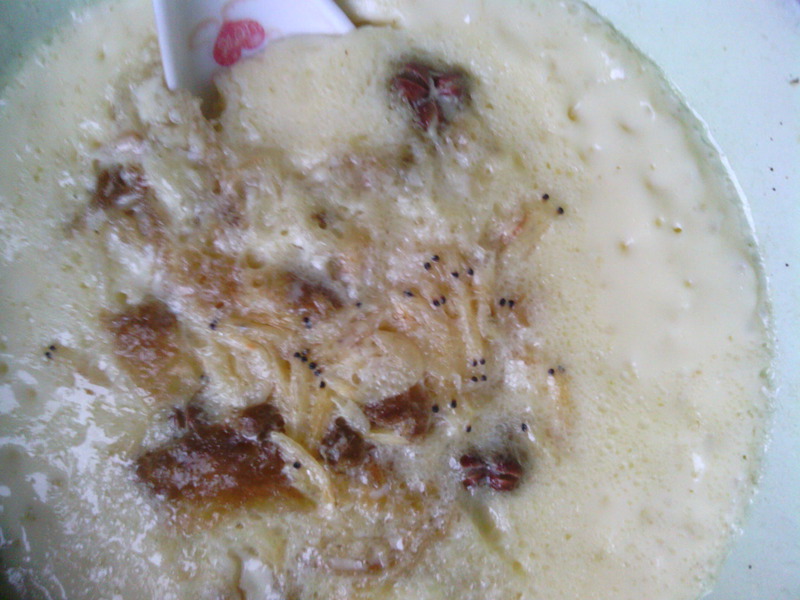 3、再加入油饼碎拌匀{我是为了消耗油饼碎才加的,可以不用加)加入几颗花椒粒拌匀