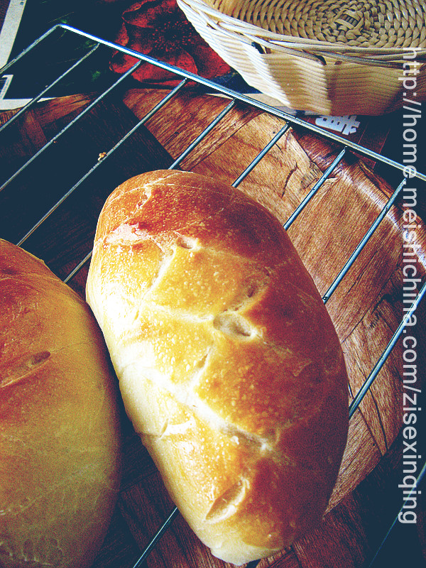 及以下步骤:轻轻卷成长条状,放到烤盘上。稍微松弛后再将面团两端揉尖(直接整成椭圆形的话这一步就省了哈)。继续发酵。 发酵至原来2倍大,刷蛋液,并趁蛋液未干前用刀片在表面交叉斜割数刀。刚买的刀片却不给力,割包效果不理想,气死我了。 一共做了2盘,第一盘做了6个小的。第二盘做了5个大点地。感觉大点的割包效果不错,比较满意。放预热好的烤箱,180度,中层,上下火,15分钟。 由于欧蕾面包孔洞较大,当配合浓汤时吸附汤汁的能力较强。 取出面团分割、排气、滚圆,醒发15分钟。 取其中一块面团揉匀,擀平。 轻轻卷成长条状,放到烤盘上。稍微松弛后再将面团两端揉尖(直接整成椭圆形的话这一步就省了哈)。继续发酵。 发酵至原来2倍大,刷蛋液,并趁蛋液未干前用刀片在表面交叉斜割数刀。刚买的刀片却不给力,割包效果不理想,气死我了。 一共做了2盘,第一盘做了6个小的。第二盘做了5个大点地。感觉大点的割包效果不错,比较满意。放预热好的烤箱,180度,中层,上下火,15分钟。 由于欧蕾面包孔洞较大,当配合浓汤时吸附汤汁的能力较强。