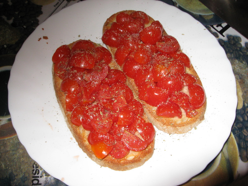 bruschetta是意大利的一种前餐,很多餐馆里都有,我经常当成正餐吃,两片面包,几个小西红柿,简单又健康。