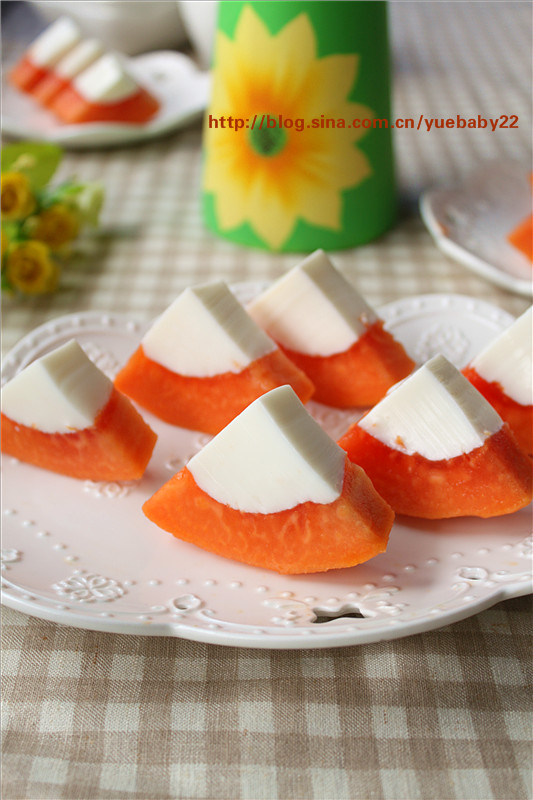 及以下步骤:1.木瓜切开,把瓤和籽挖掉。 2.吉利丁片提前用冷水泡软,杏仁露加热,把泡好的吉利丁片放入杏仁露里搅拌至溶解。 1.木瓜切开,把瓤和籽挖掉。 2.吉利丁片提前用冷水泡软,杏仁露加热,把泡好的吉利丁片放入杏仁露里搅拌至溶解。 1.木瓜切开,把瓤和籽挖掉。 2.吉利丁片提前用冷水泡软,杏仁露加热,把泡好的吉利丁片放入杏仁露里搅拌至溶解。 1.木瓜切开,把瓤和籽挖掉。 2.吉利丁片提前用冷水泡软,杏仁露加热,把泡好的吉利丁片放入杏仁露里搅拌至溶解。 3.杏仁露放温凉,倒入木瓜里,放入冰箱冷藏5小时以上。 4.冷藏好的木瓜刮掉皮,切开即可。